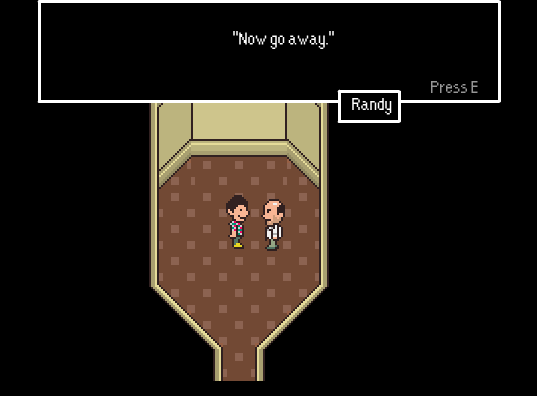 - Minor fixes with dialogue graphics, such as including word-wrap, making sure options don’t overlap, adding a name-box for the player, prompt to hit ‘E’ when text is done scrolling, etc.