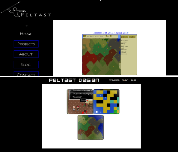 For the past two weeks I’ve been doing a mix of website work and programming. My site at peltastdesign.com was quite rough looking, so it was about time that I put more effort into it. This involved more seriously learning HTML/CSS than just the previous dabbling, which turned out to be extremely straight-forward. The result is a cleaner and snazzier, if still minimalist, layout. If you check the site out and have some feedback on it, feel free to shoot me a message.